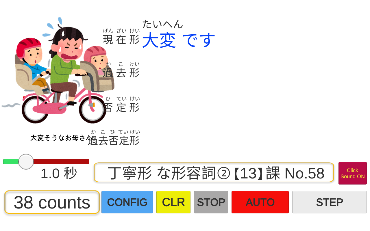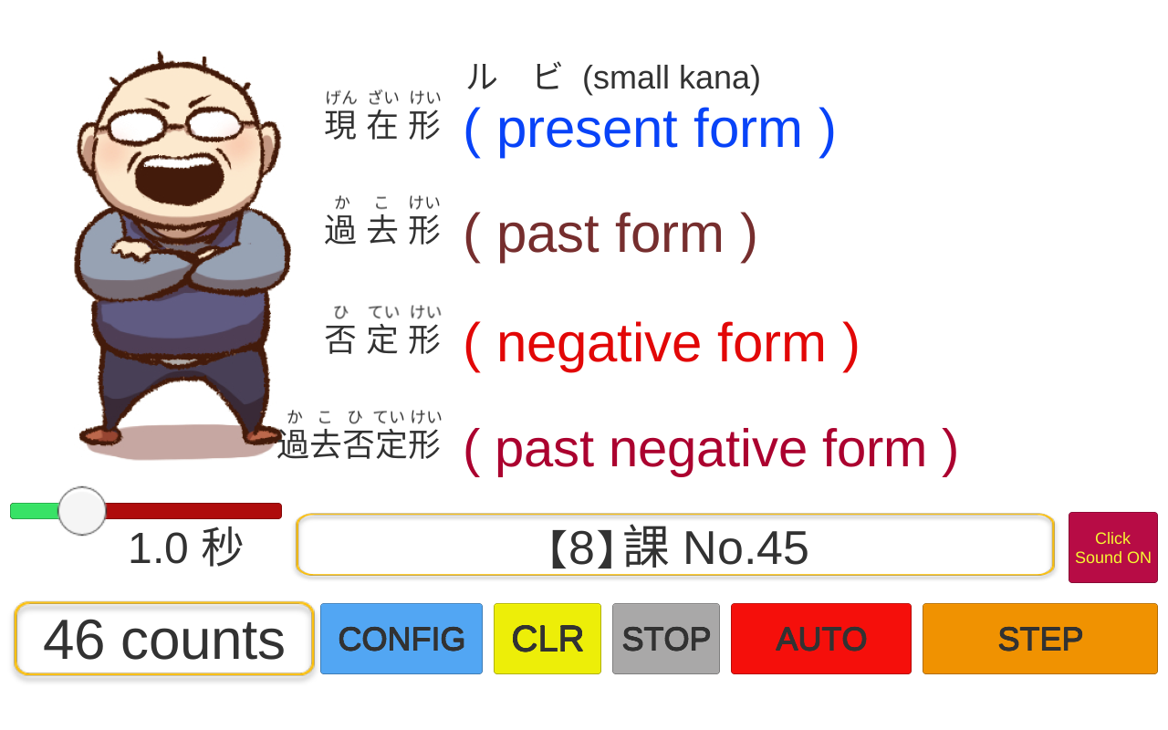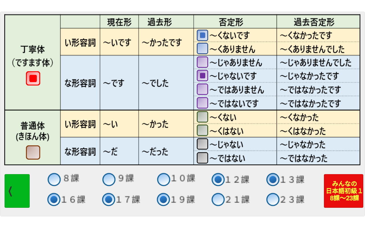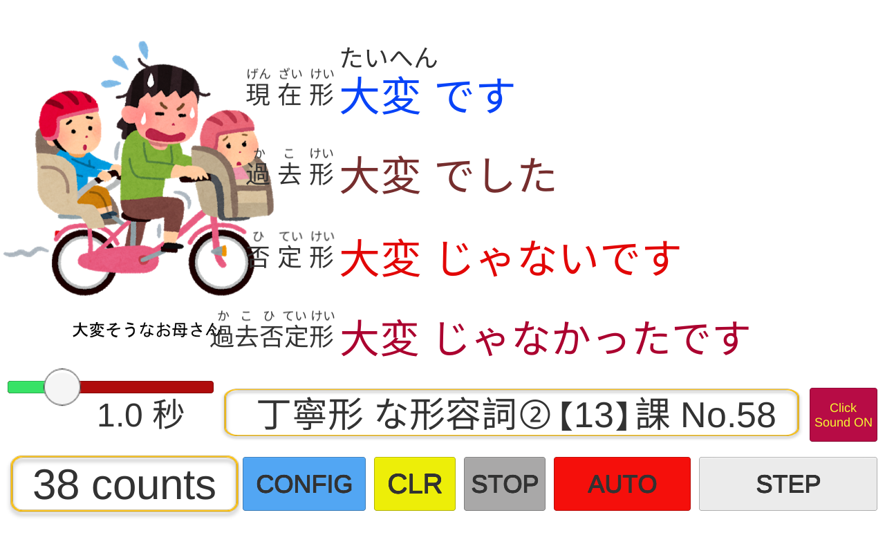 ※下記のアプリは参考としているテキスト(「文化初級日本語1」or「みんなの日本語初級1」)毎になっていること、及び 表示を1行ずつ進める「STEP]ボタンがありません。