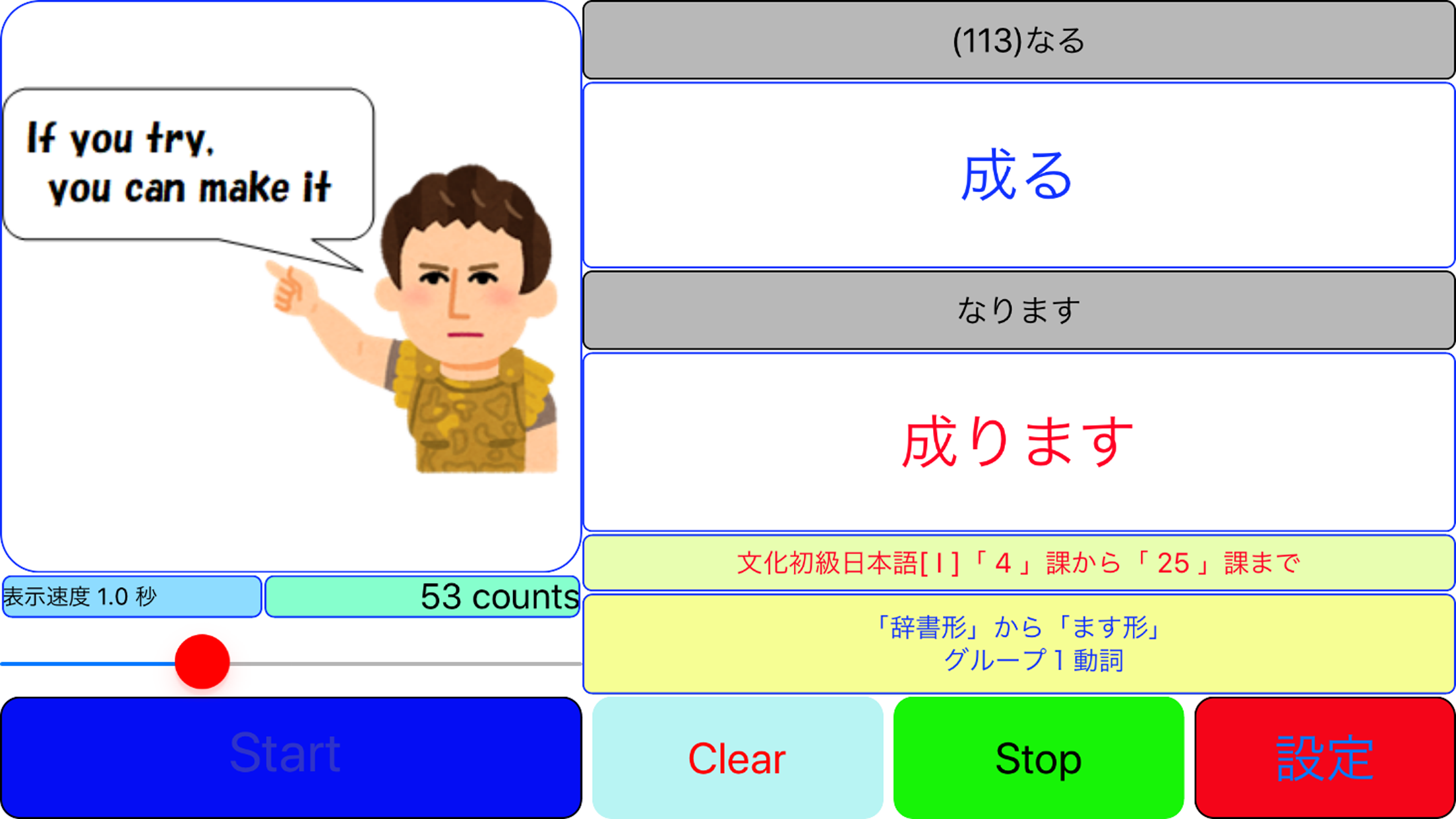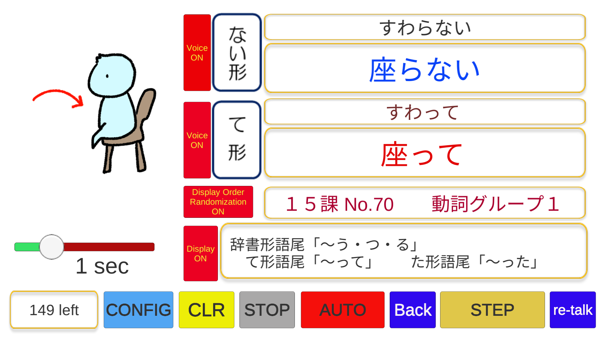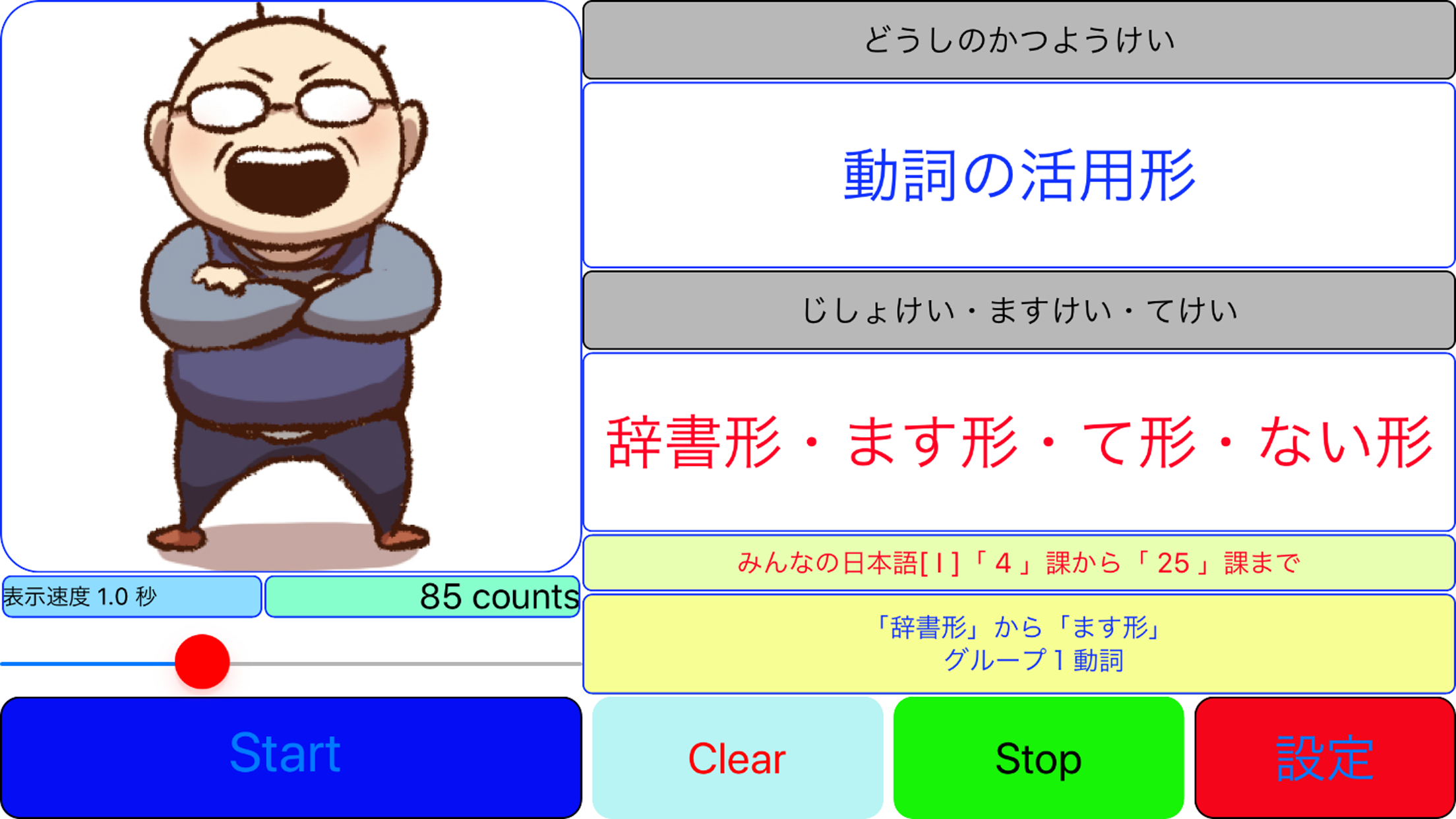 「日本語動詞活用アプリ」のスクリーンショット