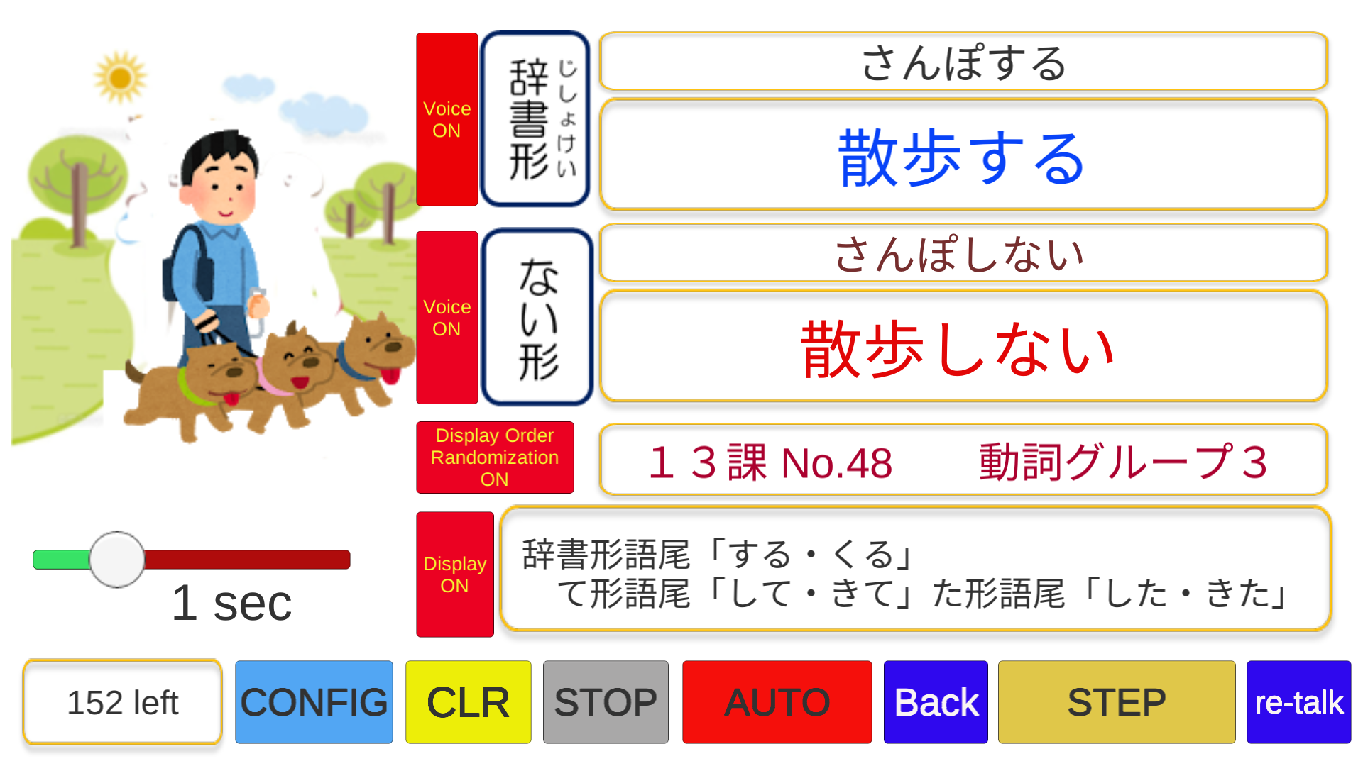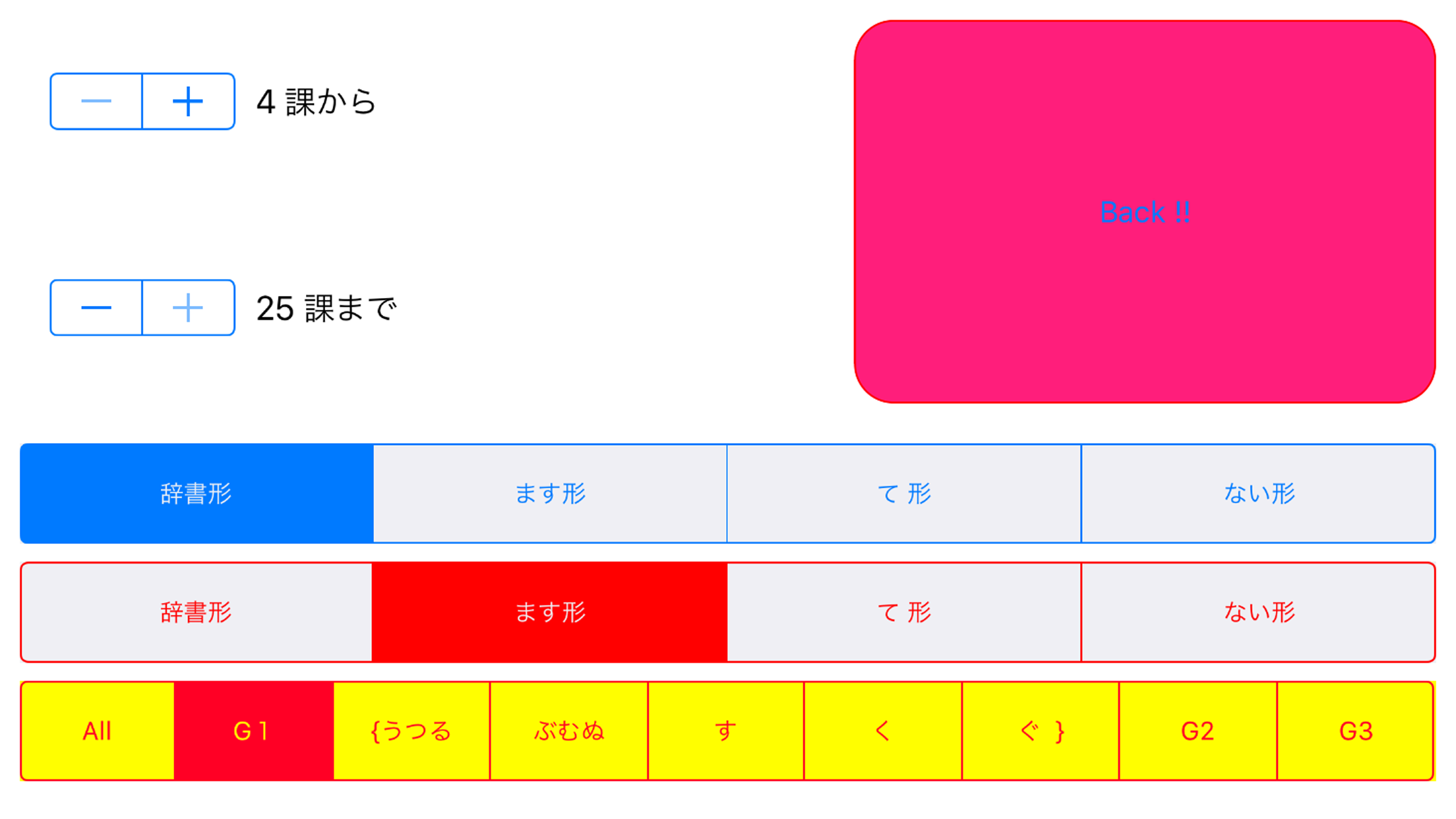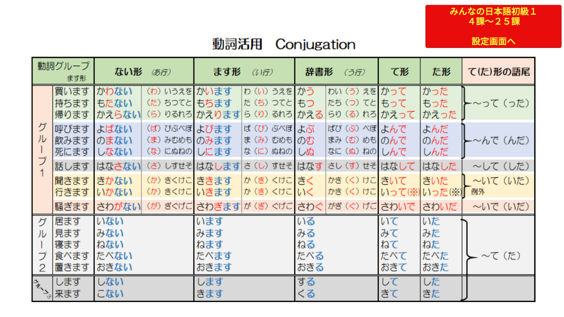 「日本語動詞活用アプリ」のスクリーンショット