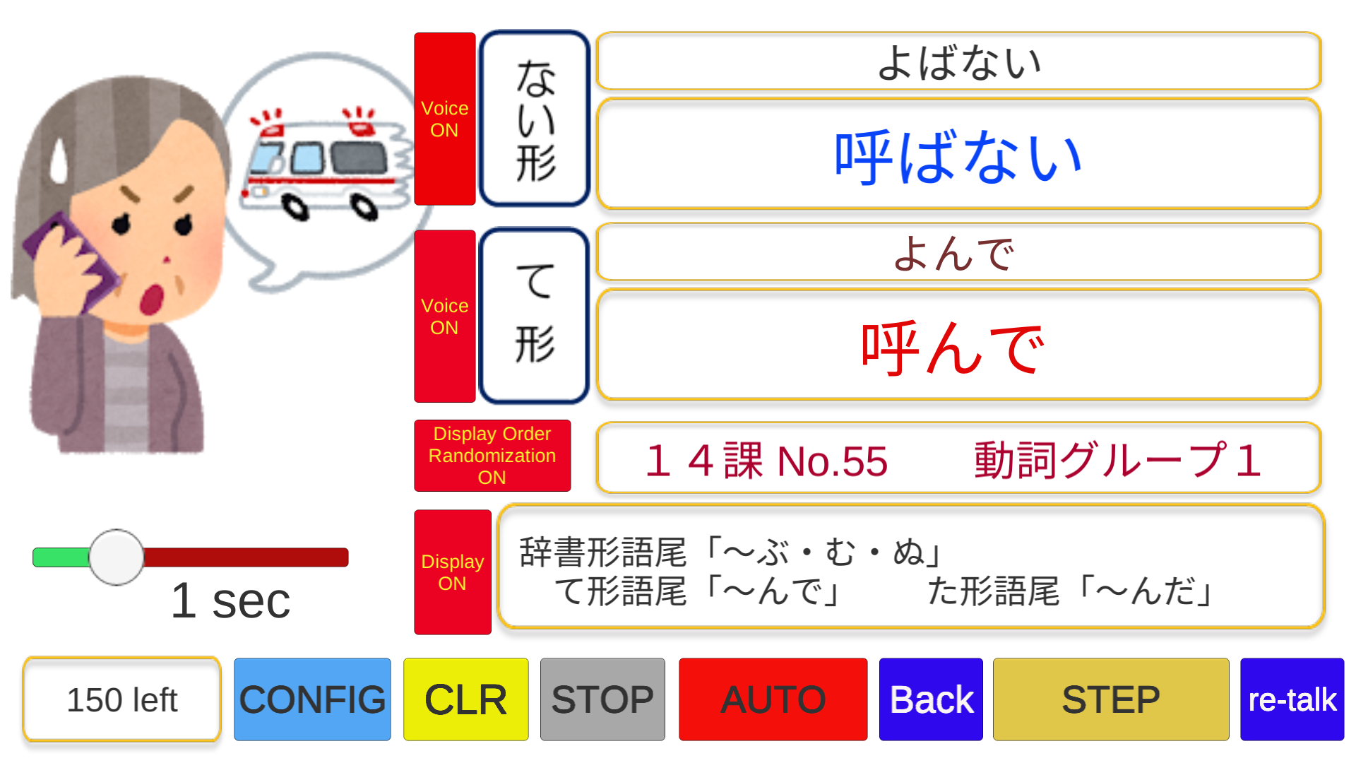 ※下記のアプリは「音声」はありません。また、 表示を1行ずつ進める「STEP]ボタンがありません。